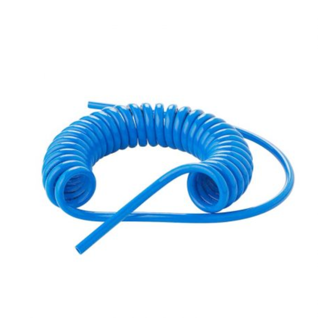 Su diseño en espiral permite que la manguera se extienda durante el uso y se recoja automáticamente al liberar tensión, manteniendo el área de trabajo ordenada y segura. Fabricada en poliuretano de alta calidad, garantiza durabilidad, resistencia al desgaste y bajo radio de curvatura, siendo ideal para herramientas neumáticas portátiles, automatización ligera y líneas de conexión en espacios reducidos.